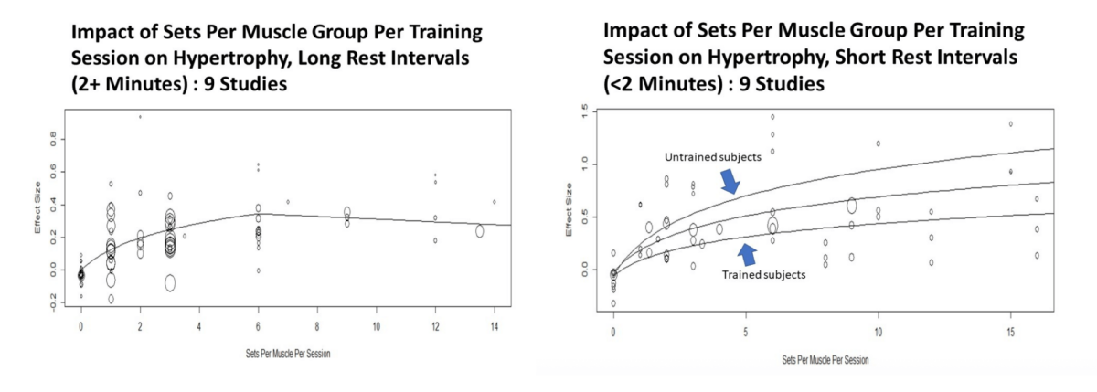 - There is evidence that the per session hypertrophy response caps out at 6-12 sets for a body part with no further hypertrophy or stimulation of MPS beyond this point.